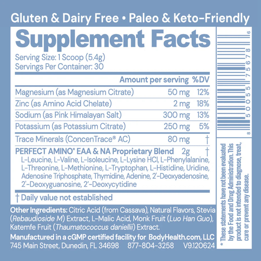 PERFECT AMINO® Electrolytes is also free of the sugars, caffeine, colorants, and toxins other formulas use to make up for poor ratios.