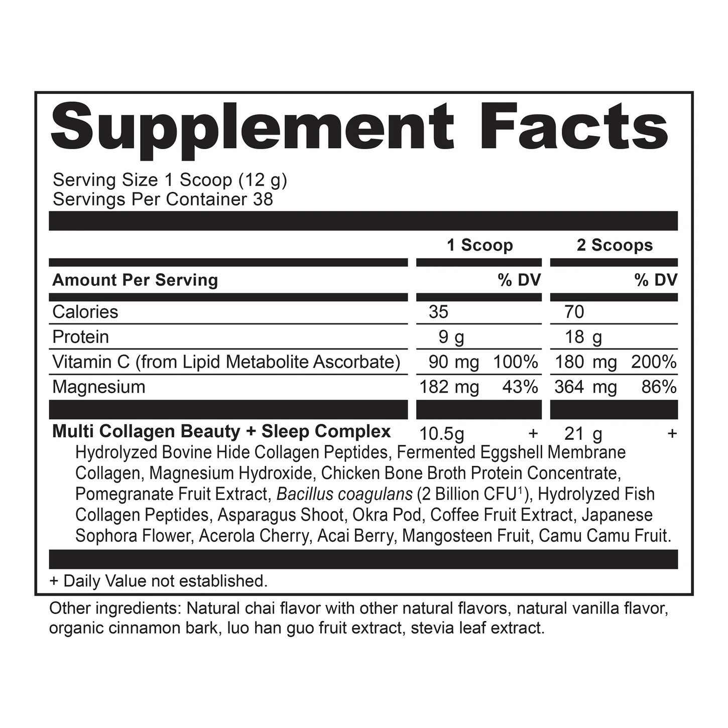 Unwind and glow from within with Multi Collagen Protein – Beauty + Sleep Support. This soothing Vanilla Chai blend combines 10 types of collagen with time-tested herbs and clinically studied ingredients to nourish your skin, support restful sleep, and help you wake up feeling refreshed and radiant.